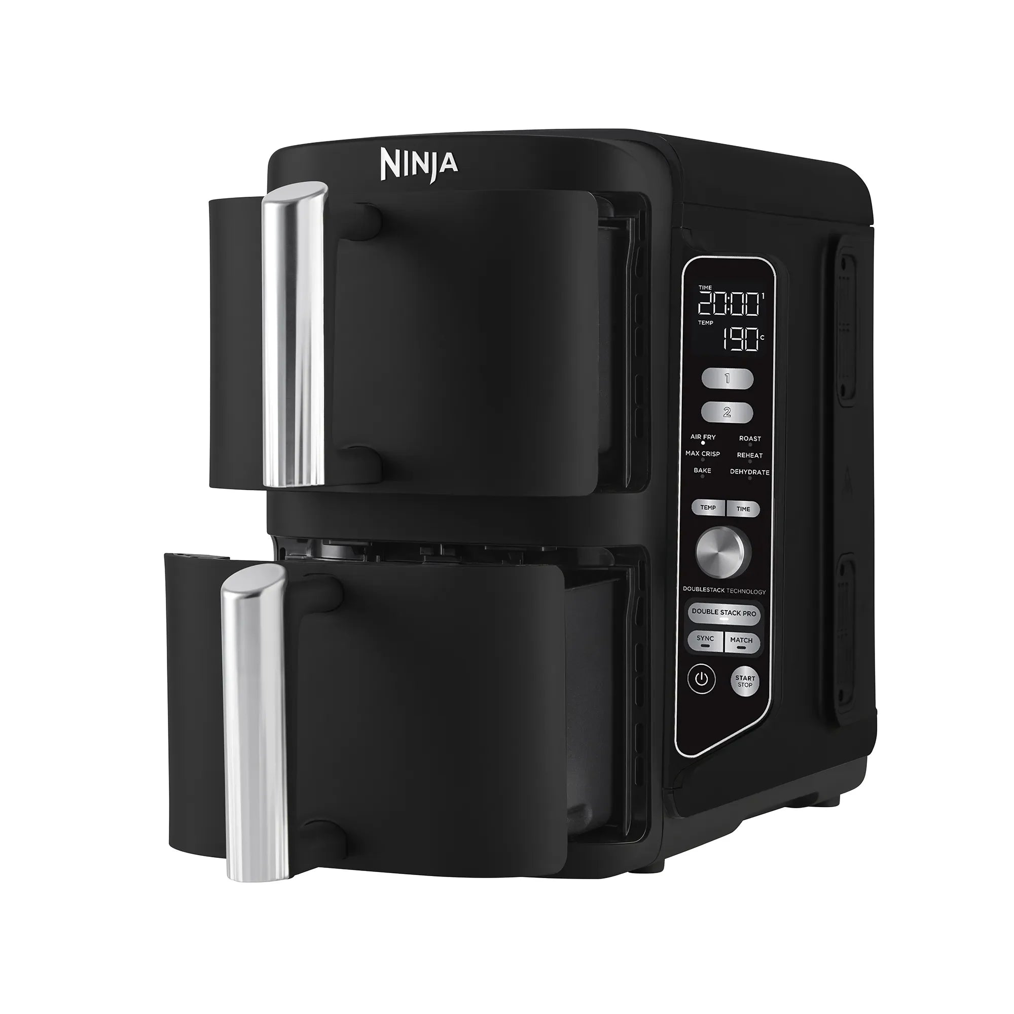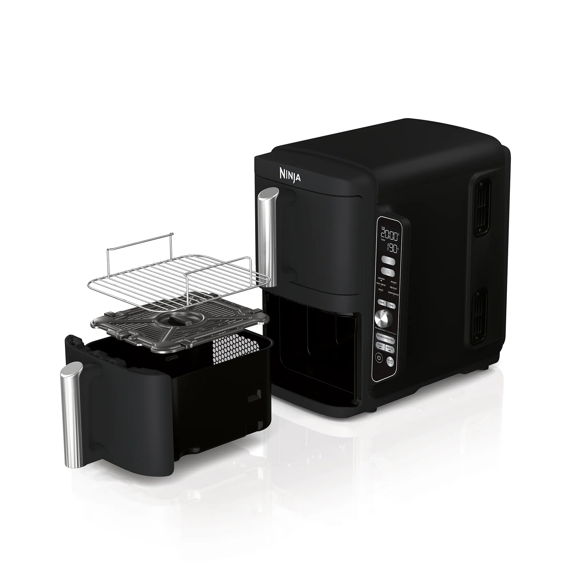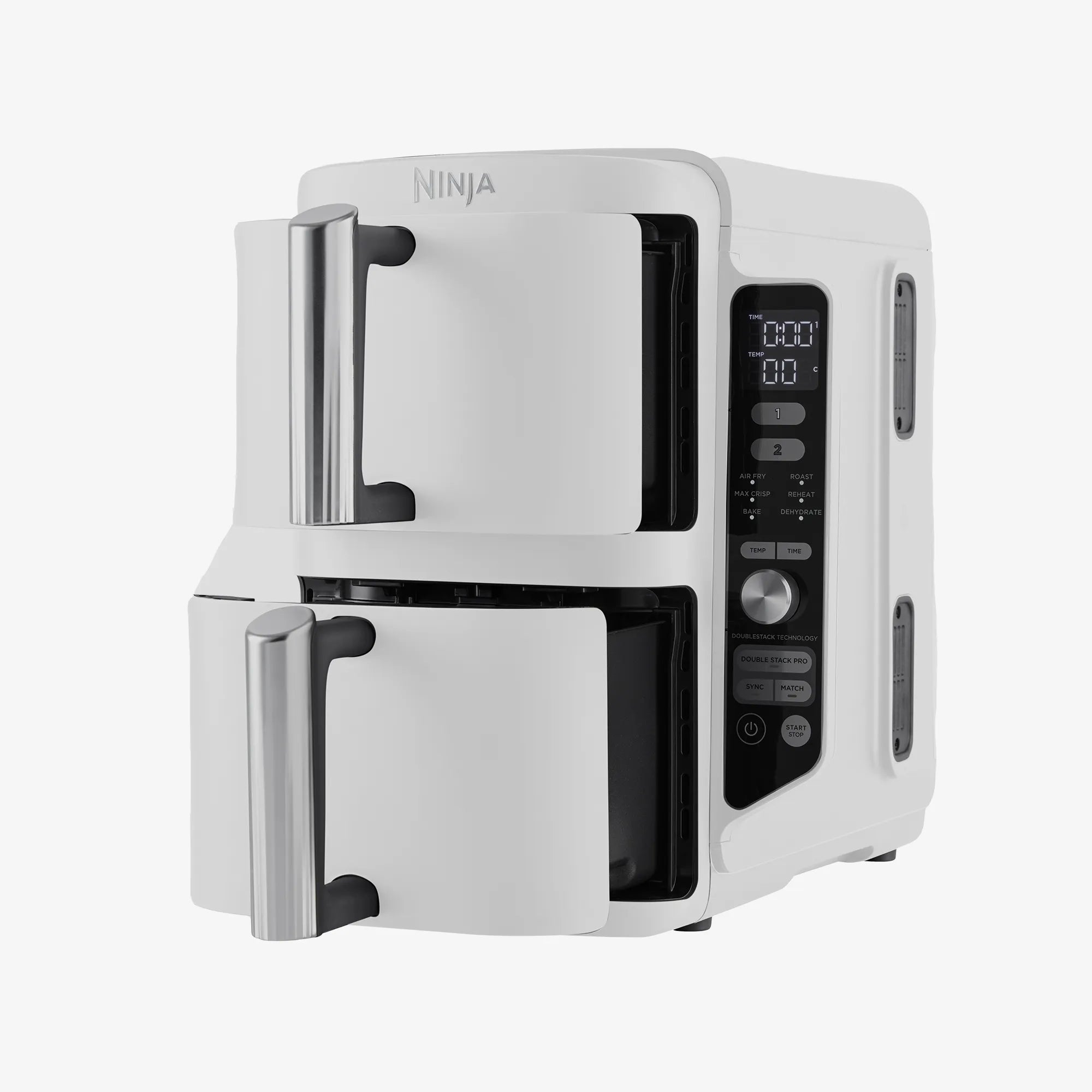 Meet the Ninja® DoubleStack™ XXXL 2 Drawer Air Fryer, the only stacked 2 drawer air fryer that can cook up to 4 foods at once. Designed for efficiency, versatility and easier family sized meals, Ninja’s stacked 9.5L design maximises benchtop space while giving you the power and capacity of 2 air fryers in the footprint of one*. Only Ninja has DoubleStack Air Frying technology that delivers the optimal air flow and even heat required to cook 4 foods at once for crispy, golden perfection every time. Simply load your veggies onto the crisper plate, insert the stacked meal rack into the drawer, and place your proteins on top to cook 2 different foods in one drawer. Two 4.75L drawers allow you to simultaneously prepare different dishes, making multitasking in the kitchen a breeze. Cook more food in a smaller footprint — easily fits two 2.3kg chickens or 2.3kg of wings in each drawer. Perfect for smaller kitchens, enjoy delicious homemade meals while keeping your benchtop clear of clutter.