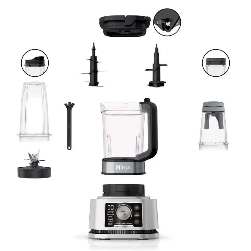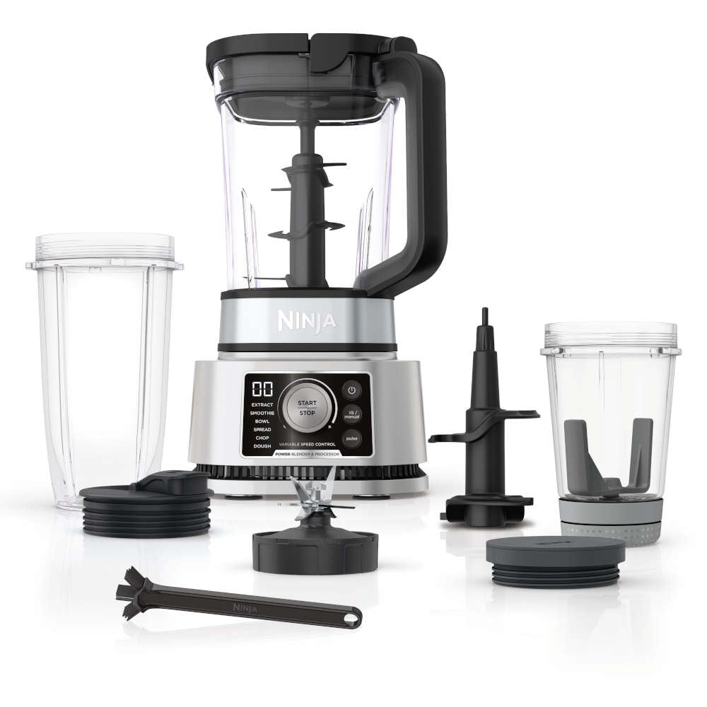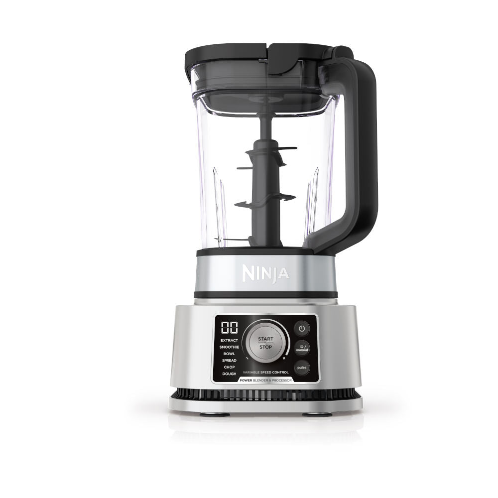 Ninja® Foodi® Power Blender & Processor System with Power Smoothie Bowl Maker and Power Nutri Blender has Variable Speed Control with smartTORQUE™ to power through at any speed and never stall. Power Blender & Processor Pitcher is a blender, liquidiser, food processor, and dough mixer. Power Nutri Cup for smoothies. Power Smoothie Bowl Maker makes smoothie bowls. 1200W.