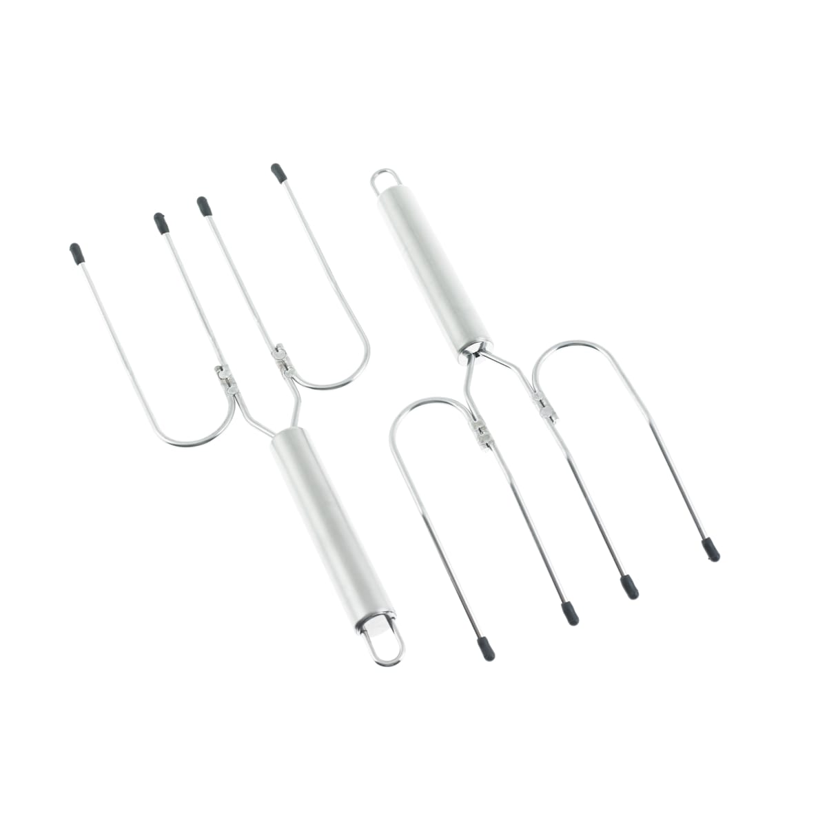 Easily lift and remove whole chickens, roast meat joints or other large ingredients from the cooking pot with this set of two roasting forks.