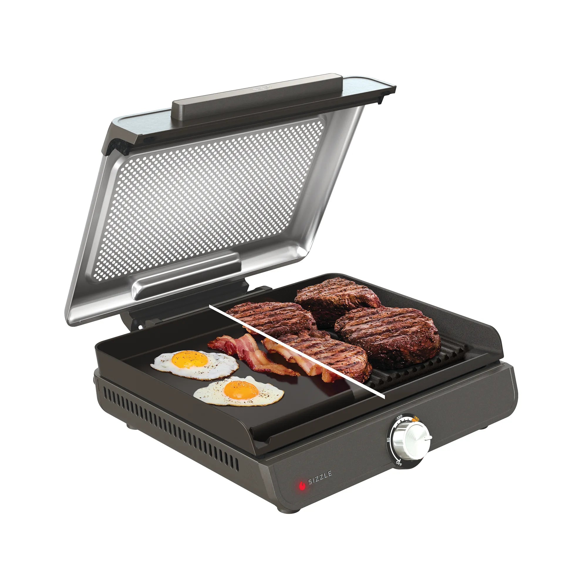Meet the Ninja Sizzle™ Indoor Grill and Flat Plate, the compact cooking system that grills and sears your favourite meals right from your benchtop. Reaching temps up to 260°C, achieve the perfect char-grilled marks with direct, edge-to-edge even heat. Satisfy any meal craving using the interchangeable grill and flat plates, from fluffy pancakes to tender chicken breasts that the whole family will enjoy.