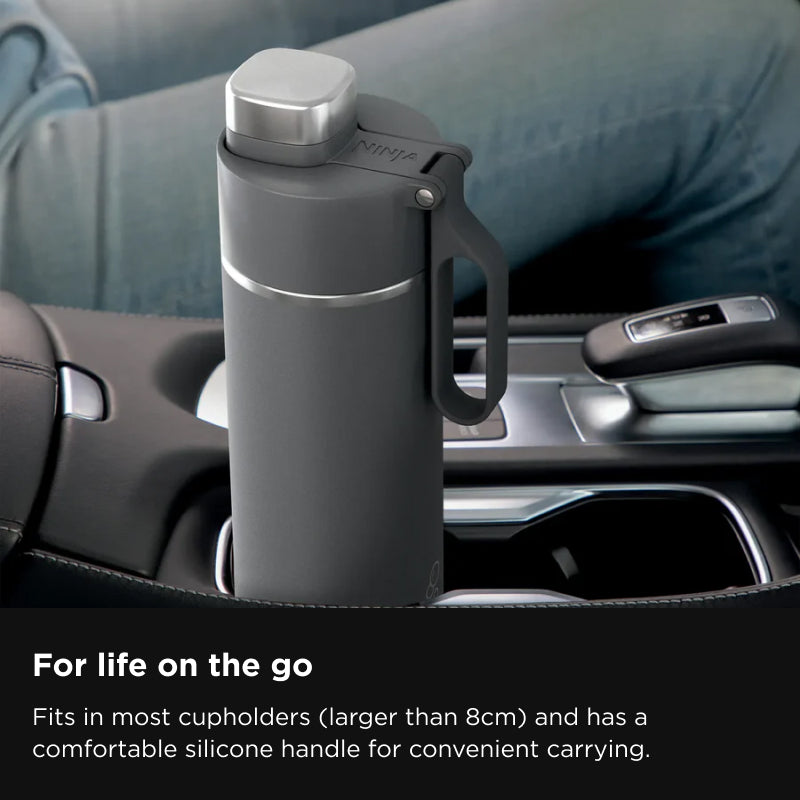 Meet the Ninja Thirsti™ 700ml Travel Bottle engineered to keep drinks colder and fizzier for longer. This innovative drinkware is designed for carbonated drinks but is perfect for still, sparkling, hot or cold drinks too. LeakLock lid won’t leak, drip or spill. This durable 18/8 stainless steel bottle resists scratches and dents and fits in most cupholders making it ideal for life on the go.
