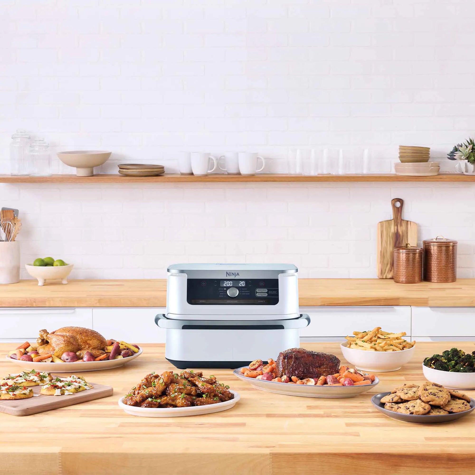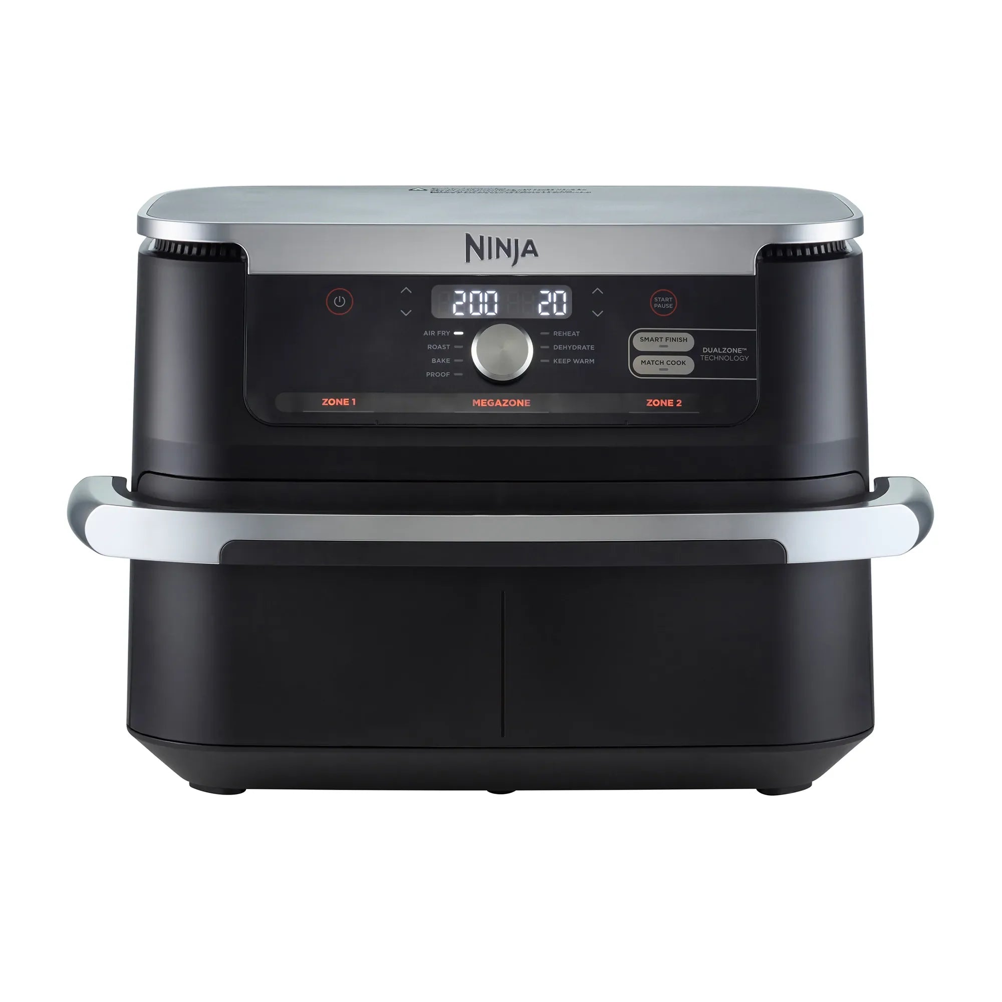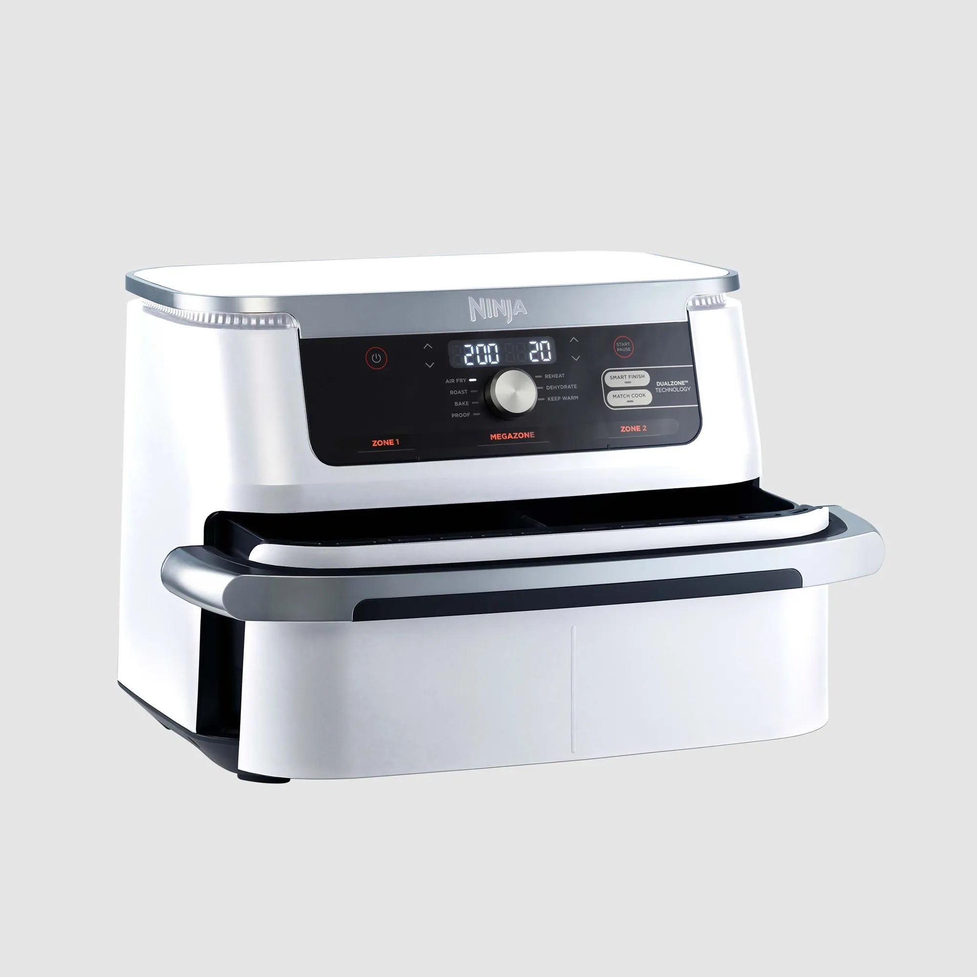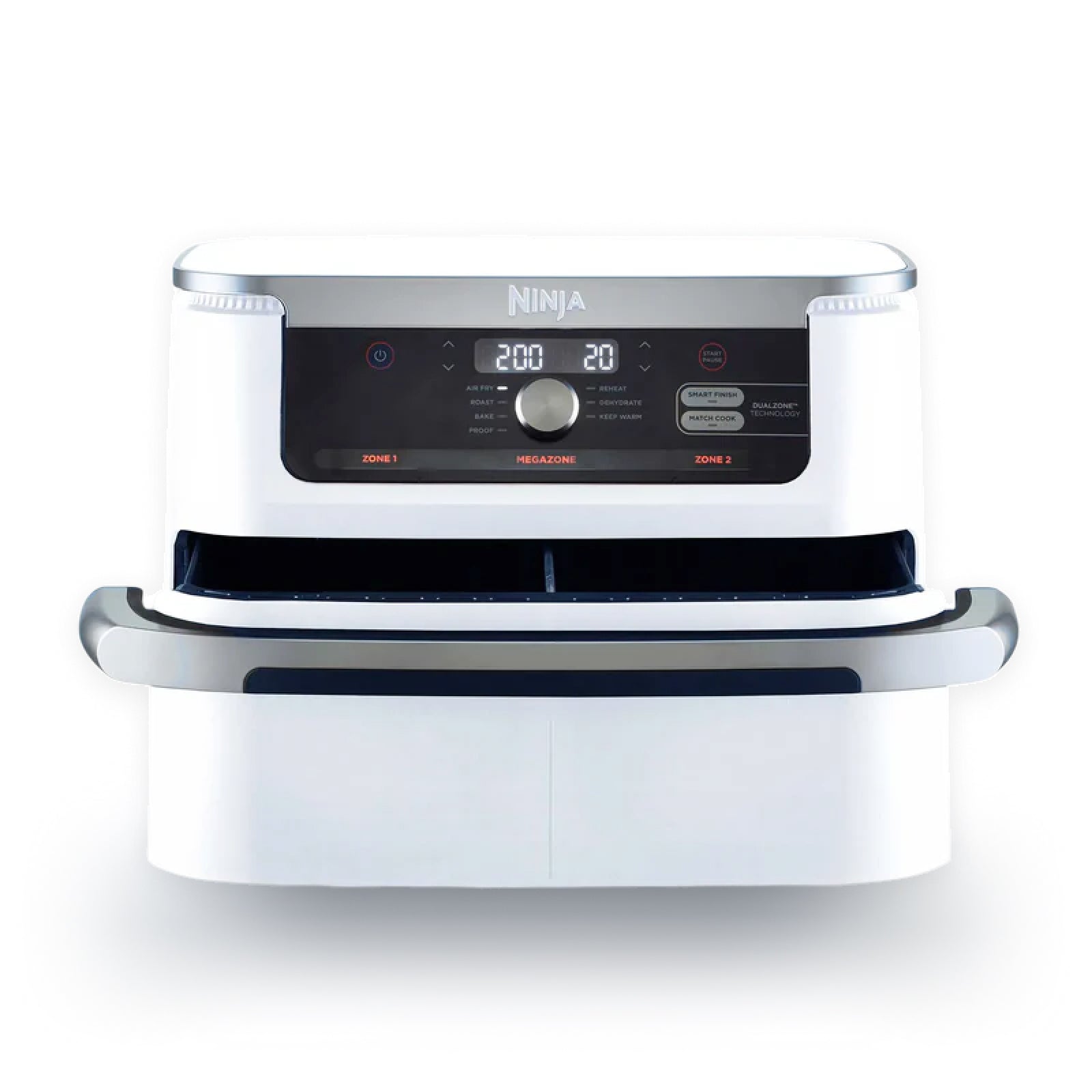 Meet the Ninja XXXL FlexDrawer Air Fryer with 10.4 L MegaZone™. With the MegaZone™, you can now cook larger proteins or entire meals that feed your whole family all in one drawer. Insert the draw divider to cook with two 5.2 L drawers or remove it to cook in 1 MegaZone™ for full 10.4 L capacity. Eliminate back-to-back cooking with DualZone™ Technology. Use Smart Finish™ to cook 2 foods, 2 ways that finish cooking at the same time, or Sync the settings across both zones with Match Cook™. Plus, it has 7 cooking functions, so no matter what you’re craving, you can make it all in this extra-large air fryer.